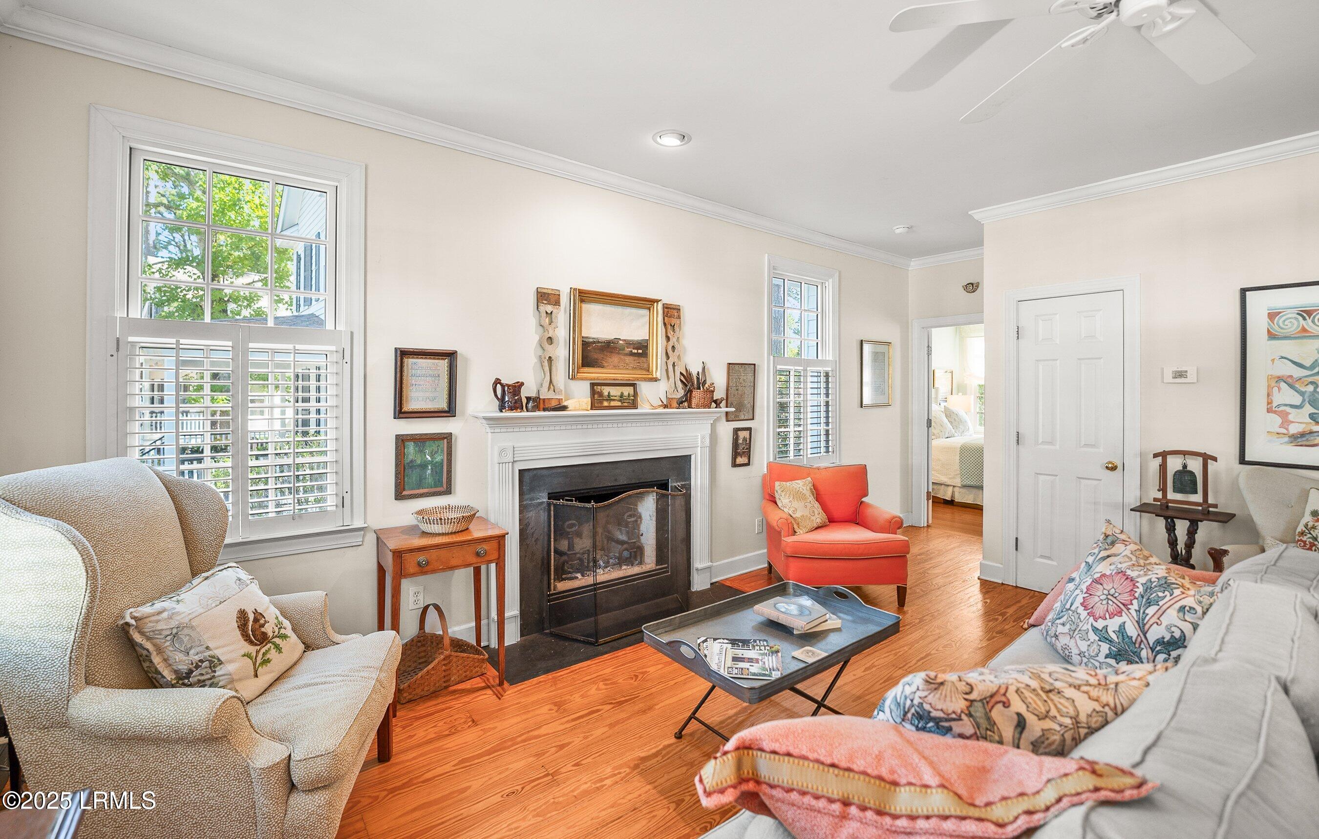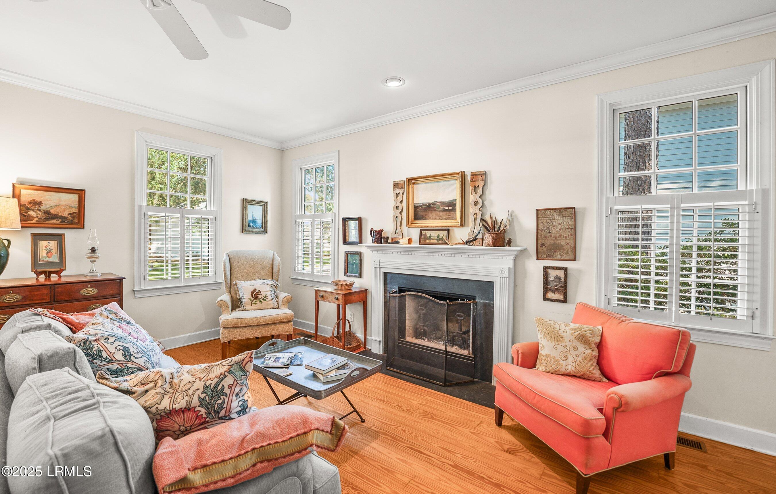 Welcome home! This inviting Cottage is straight out of a movie set... quaint sidewalks and mature landscaping all set on the beautiful waterfront community of Battery Point! As you walk into this home, the open floor plan invites gatherings! The dining room sits conveniently to the right with the living area to the left. The living area is centered on a beautiful wood burning fireplace and are punctuated by the beautiful hardwood floors throughout! The galley kitchen is a step above with dual fuel stove/oven and newer appliances which lead to the laundry room/mudroom! The first floor is completed with a large primary bedroom with a large closet and attractive bathroom! There is a half bath at the bottom of the stairs which lead to the two large guest bedrooms and large guest bath. There is an abundance of storage in the walking attic.... Both of them!!