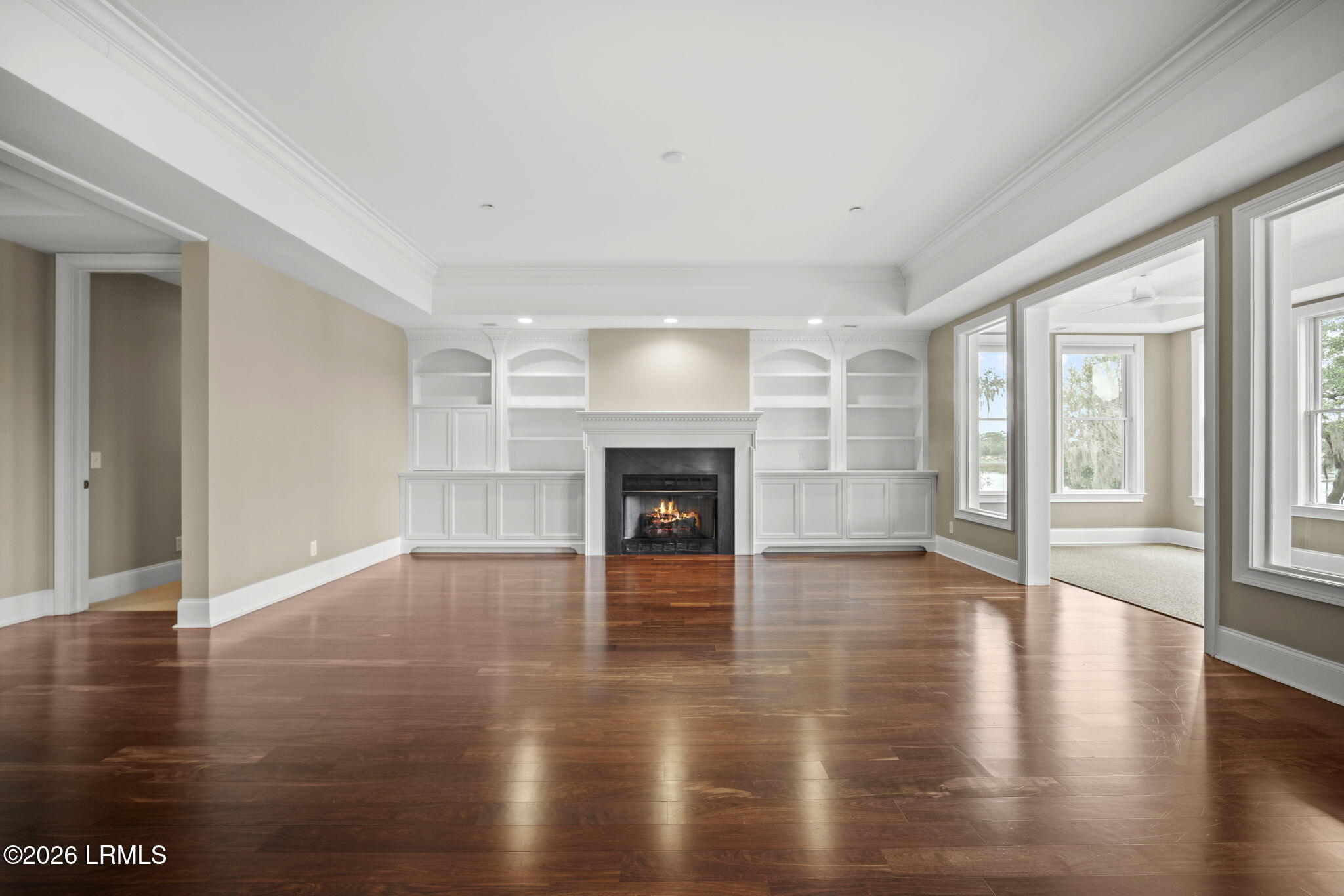 Step into this meticulously designed home and be greeted by an abundance of natural light across the spacious one level living area. The open-concept layout seamlessly blends the living, dining, and kitchen areas, creating an open and inviting space. The living room is anchored by a gas fireplace surrounded by built-in cabinets. A large sunroom overlooks the landscaped grounds, the water and community dock.Brand new hot water heater. The recently remodeled kitchen offers granite countertops, stainless steel appliances, including an induction range, ample storage space, a pantry, and a bar height counter.