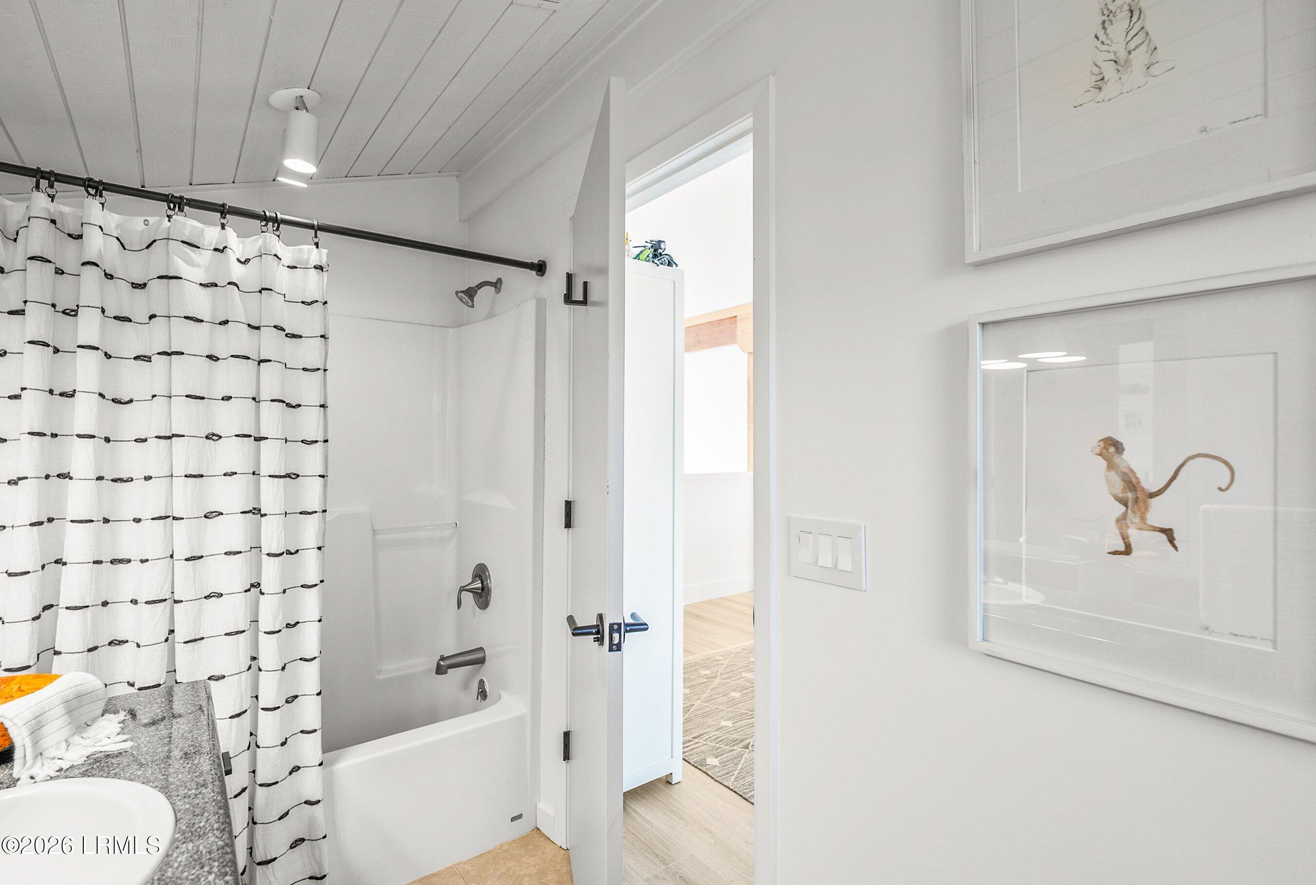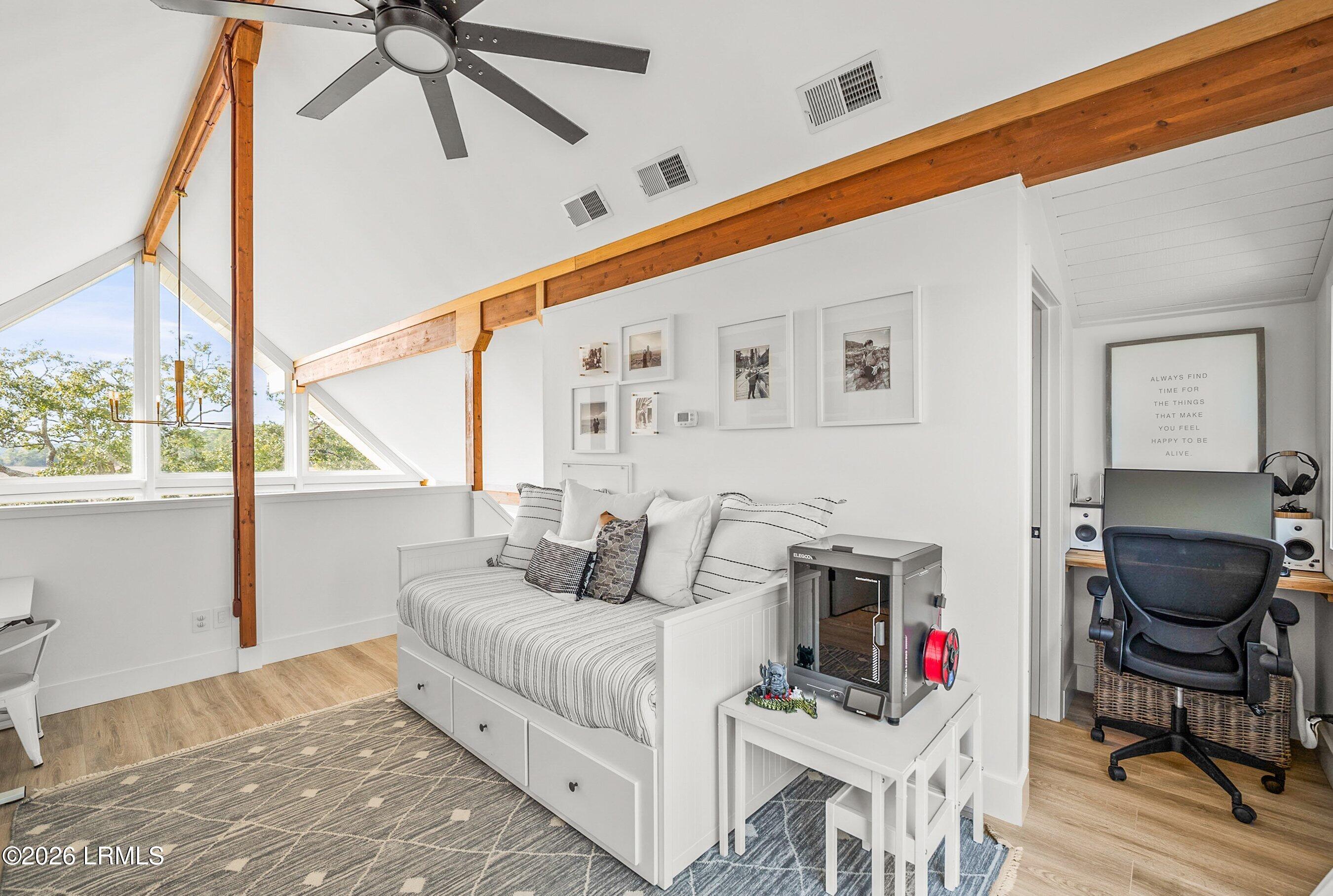 Upstairs is a bonus room with a full bath, providing flexible space for guests, an office, or a media room.