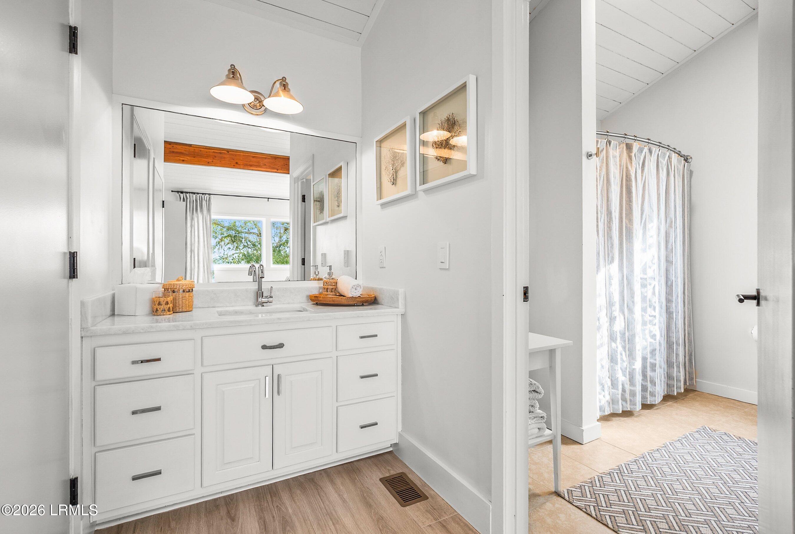 The ground level offers generous storage, including a two-car garage, and a workshop. Lost Island is one of Beaufort's most sought-after neighborhoods, known for its quiet setting and convenient access to town. The location offers quick trips to grocery stores and shops and is just over three miles from historic downtown Beaufort.